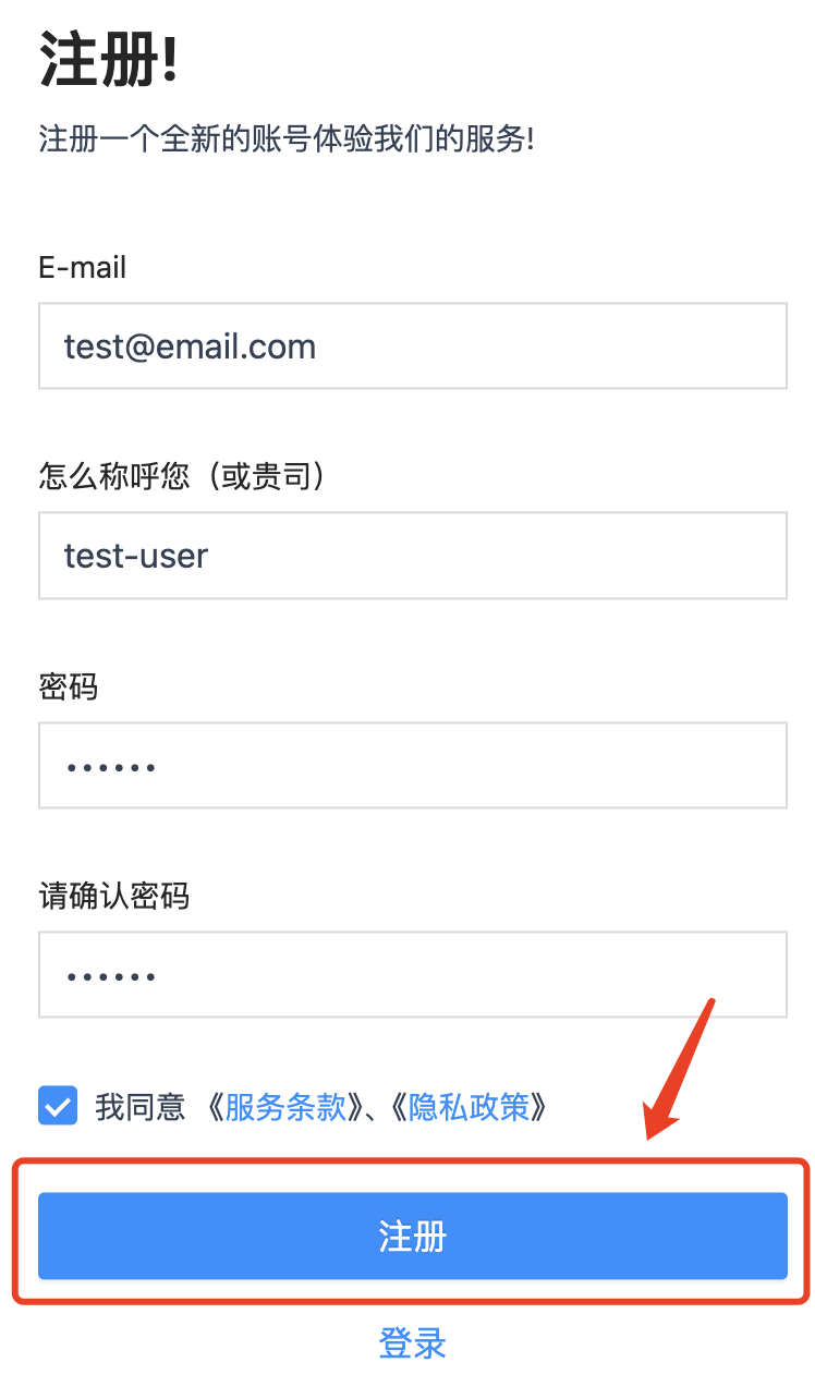 我们点击注册按钮。